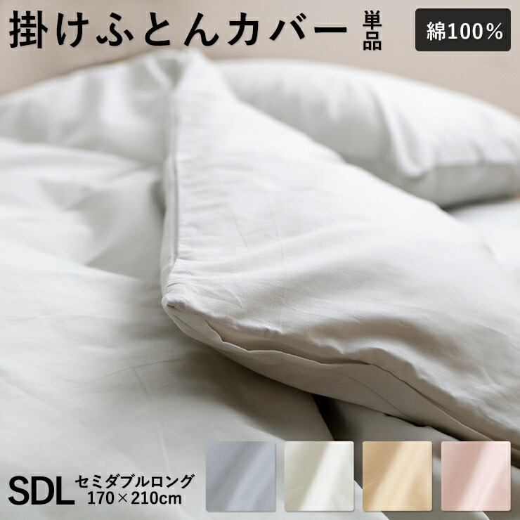 綿100% 掛け布団カバー 無地 セミダブル 170×210cm 綿100% 掛けカバー ふとんカバー 布団カバー ホック ボタン式 セミダブルロング