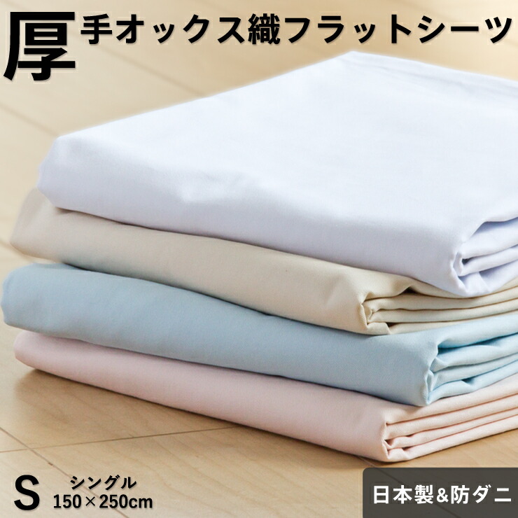 厚手 フラットシーツ シングル150×250cm 防ダニ オックスフォード織り 綿100% 日本製 シーツ ホテル仕様 厚地 国産 無地カラー