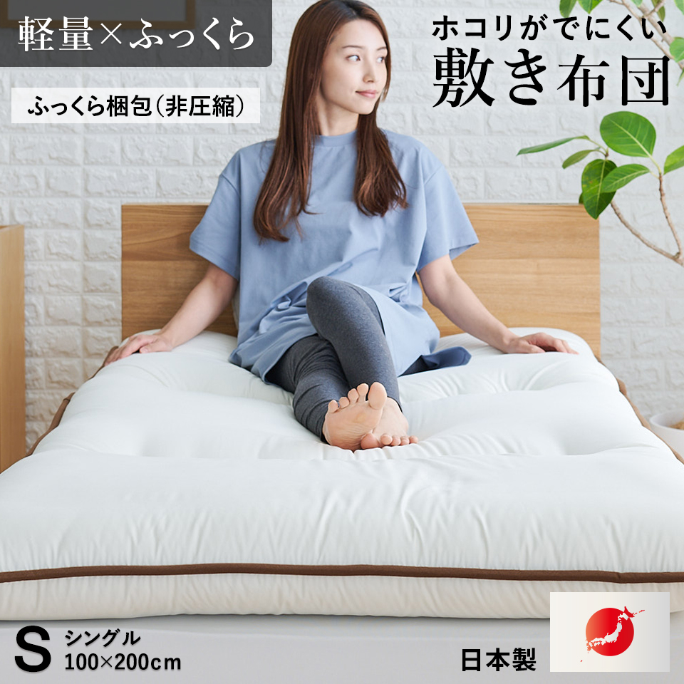 固綿入り 敷布団 ホコリがでにくい ふっくら非圧縮梱包 軽量 敷き布団 シングル 100×200cm 厚手 三層 来客用 コスパ重視 の方などにオススメ 敷きふとん 日本製