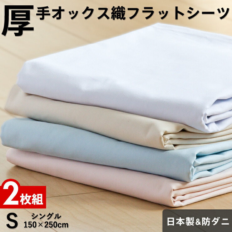 2枚組 1枚あたり2,845円 フラットシーツ シングル 厚手オックス織 綿100%