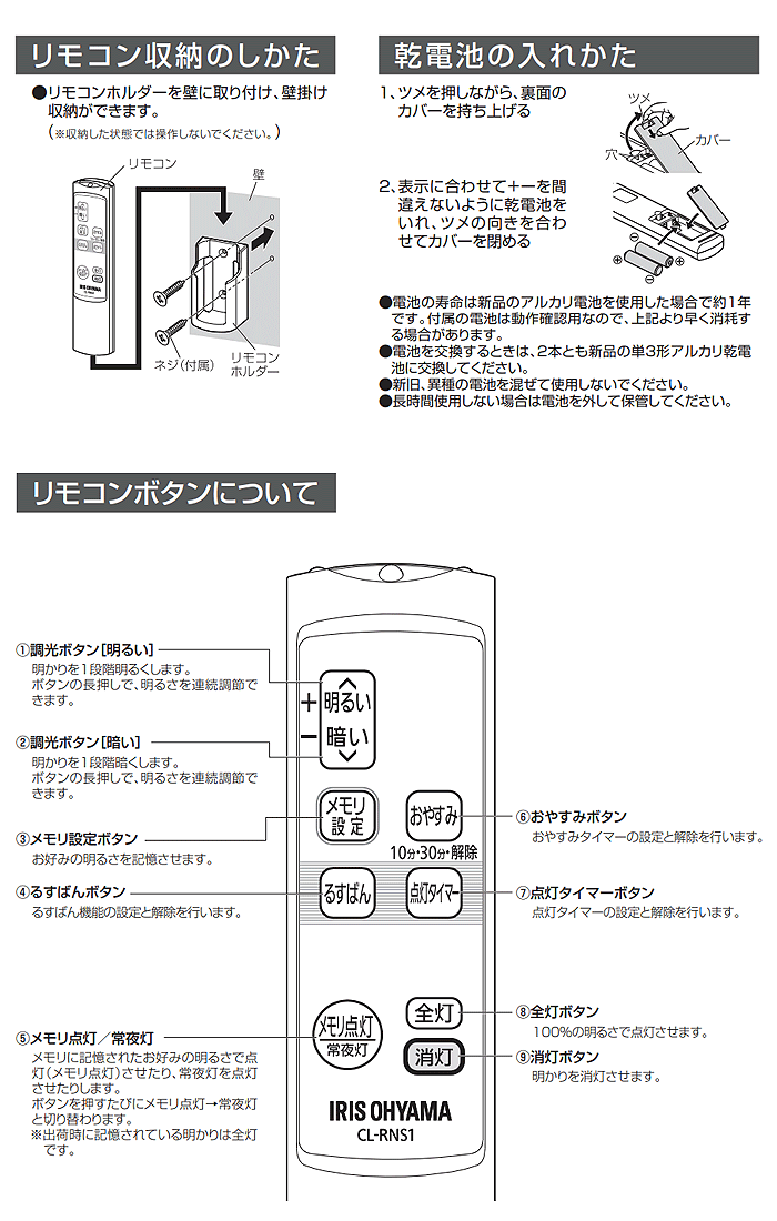 [新品]アイリスオーヤマ リモコン LEDシーリングライト用 CL-RNS1 純正 リモコン シーリングライト LED 照明 79278 「送料無料」