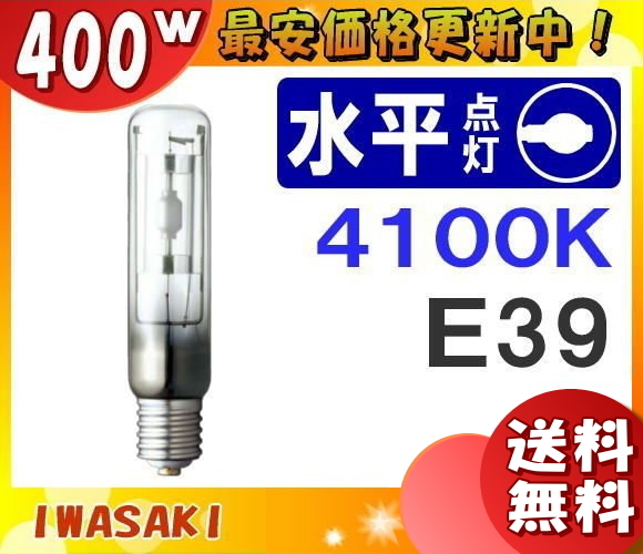 「送料無料」岩崎 MT400CE-W/BH セラミックメタルハライドランプ 400W 透明形 水平点灯 白色 E39 MT400CEWBH
