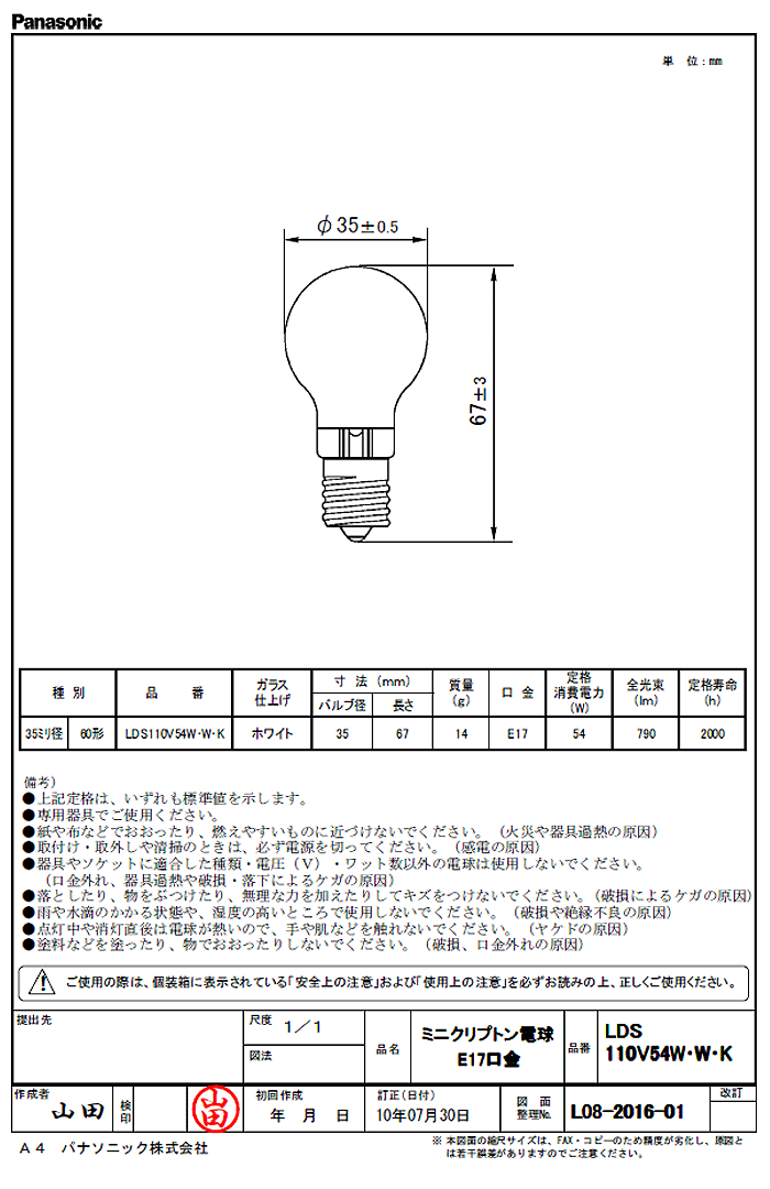 カタログ品番:LDS110V54W・W・K/25K
