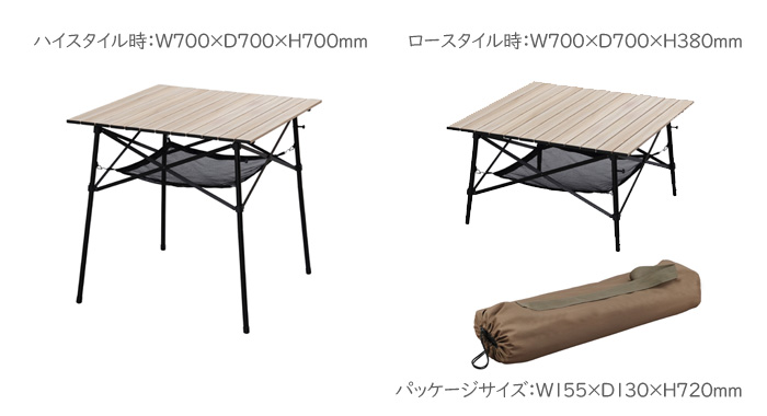 ・ロールトップでコンパクトに収納できるウッドグレインテーブルです。