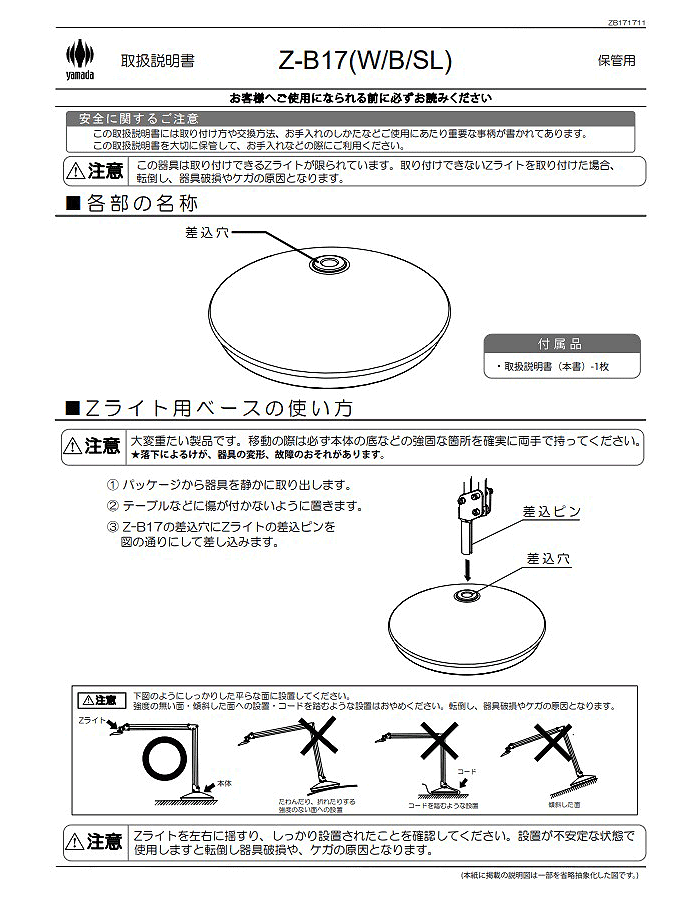 山田照明 デスクベース Z-B17SL Zライト専用 オプション パーツ 卓上 台座 デスクスタンド シルバー 銀 「送料無料」
