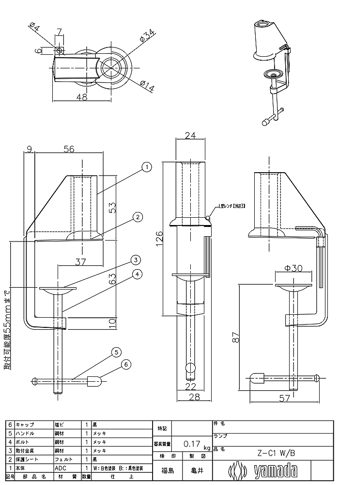 山田照明 Z-C1W Zライト専用クランプ ホワイト ZC1W「送料無料」