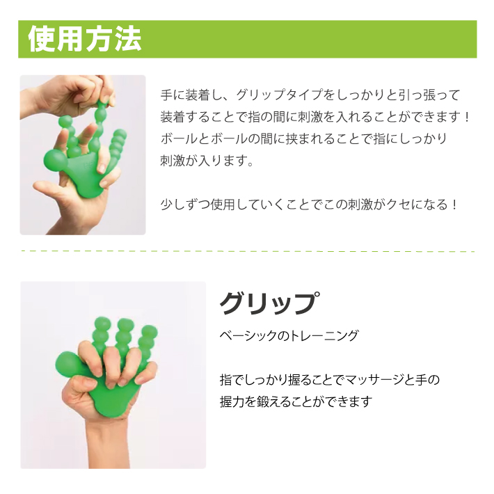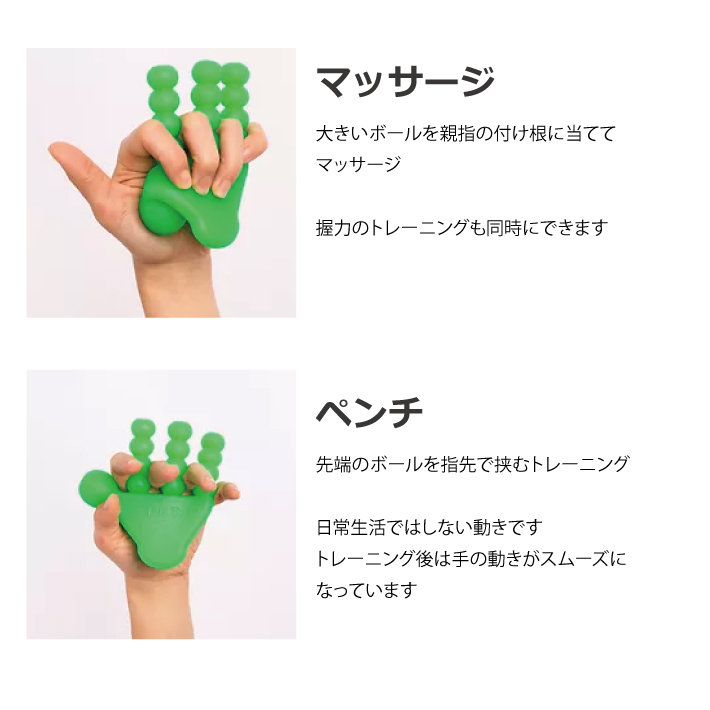 ボールとボールの間に挟まれることで指にしっかり刺激が入ります。