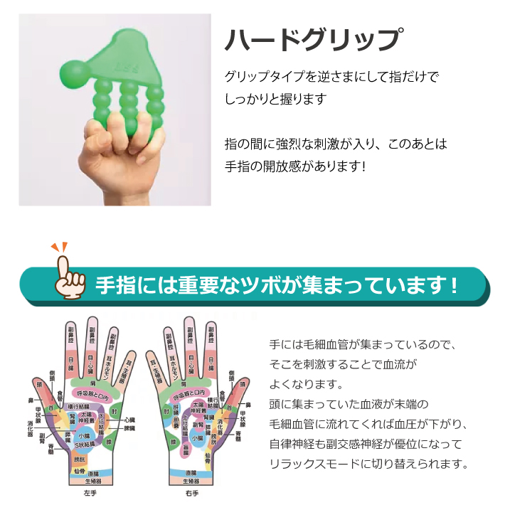 手には毛細血管が集まっているので、そこを刺激することで血流がよくなります。