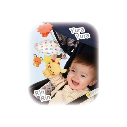 やわらかな素材のベビーカーメリー。モンポケのなかまたちと楽しくおでかけができます。ベビーカーの日よけ部分にクリップで取り付けられ、おでかけ時に赤ちゃんがゆらゆら揺れるメリーを眺められます。ピカチュウの中には鈴が入っているので、ゆらすとリンリン音がします。星の部分に面ファスナーが付いており、安全のため引っ張っると外れるようになっています。やわらかな素材で出来ているので、赤ちゃんのはじめてのおもちゃにぴったり。