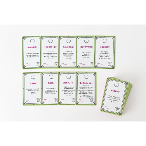 カードに書かれた不可解な物語の真相を、「はい」「いいえ」「関係ありません(わかりません)」のいずれかで答えられる質問をくり返しながら、解き明かしていく推理カードゲームです。