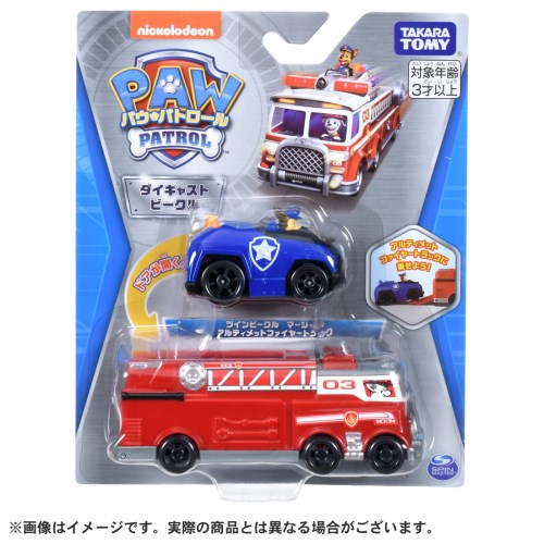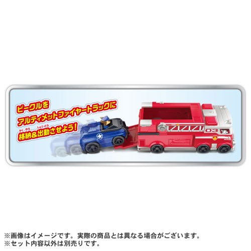 テレビアニメ「アルティメットレスキュー」シリーズで活躍するアルティメットファイヤートラックとチェイスのポリスカーがセットになって登場!