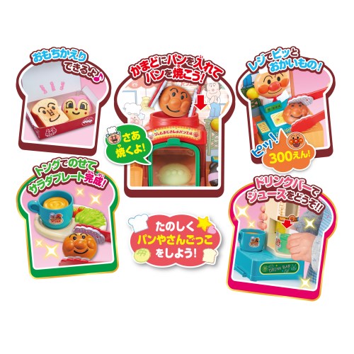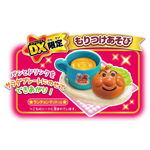 ■説明:かまどでパンが本当に膨らむ「ジャムおじさんのやきたてパン工場」にDXが登場! ドリンクバーでジュースもスープも作れちゃう♪パンが焼けたら、サラダプレートにドリンクと一緒に盛り付けてはいどうぞ! ごっこ遊びの小物も盛りだくさ....
