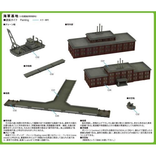 ・司令部、クレーン船、浮桟橋、対空砲 各2入り