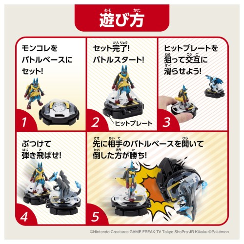■説明:モンコレでバトルゼ! ぶつけて、弾き飛ばせ!! 勝つのはどっちだ?! 「バトルゼ」の遊び方 (1)好きなポケモン(モンコレ)をバトルベースにセット!※ (2)セットが完了したら、バトルスタート! (3)ヒットプレートを狙って交互に滑らせよう! (4)ぶつけて弾き飛ばせ! (5)先に相手のバトルベースを開いて倒した方が勝ち! セット内容 バトルベース(ハイパーボール)×2 モンコレ(メガルカリオ)×1 モンコレ(メガリザードンX)×1 ※付属のモンコレ以外、別売りのMSシリーズのモ....