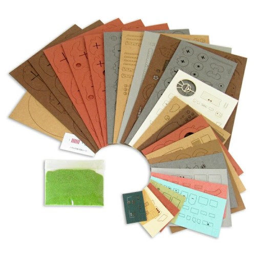 レーザーシートA1〜A6 B〜U×26、印刷シート×1、地面(粉)、組み立て説明書×1