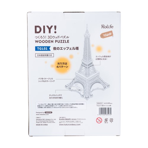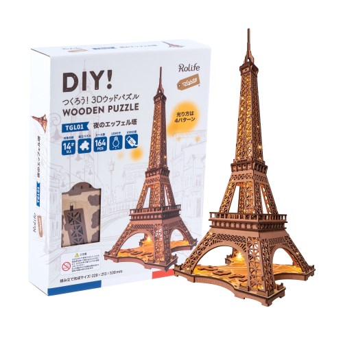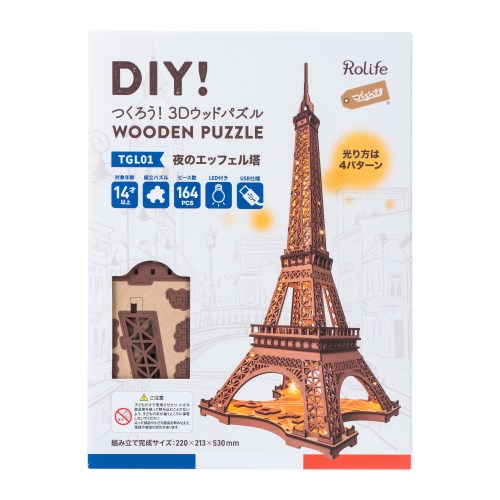 ■説明:人気の「TG501 エッフェル塔」が、サイズアップ+LEDライト付き+着色済みにパワーアップして登場しました! LEDライトは4種類の点灯パターンをお楽しみいただけます! シックなカラーリングで、お部屋のインテリアとしてもオススメ♪ おうちにいながらパリを感じることができるウッドパズルです! このキットは、カット済みウッドシートとサンドペーパーが入ったオールインワン組み立てキット。 特殊な道具も不要なのでプレゼントにもオススメです! USB電源でのLED点灯。 ※Type C USBアダプター必要(別売り)....