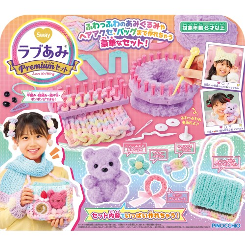 ● 簡単にあみぐるみやマフラーなどのニット小物が編める編み機「ラブあみ」のプレミアムセットです。