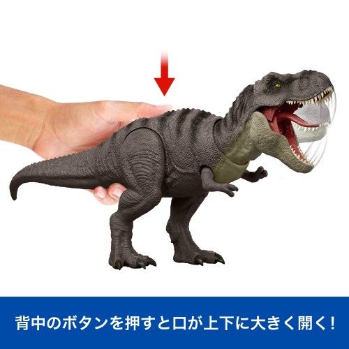 ■説明:映画『ジュラシック・ワールド/復活の大地』にインスパイアされたT-レックスのフィギュア。 背中のボタンを押すと上下に大きく開くあごでダイナミックに噛みつく迫力あるアクションを楽しめます。 フィギュアと連動する無料アプリ「ジュラシック・ワールド・プレイ」に対応しています。