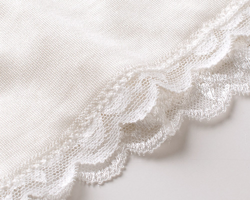お肌に触れる身生地はシルク100%。シルク生地の上にレースを施しているので透けにくくて安心
