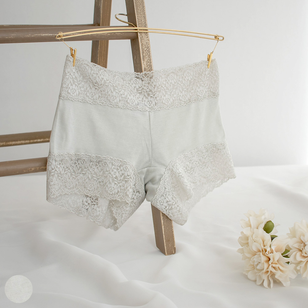 ウエストと足繰りはゴムを使用せず幅広レースを使用して柔らかく締め付けのない履き心地に。程よいフィット感がありつつも食い込みにくく響きにくい。しっとりソフトなシルクがお肌にそっと優しく寄り添ってくれる、癒しの肌触りです。