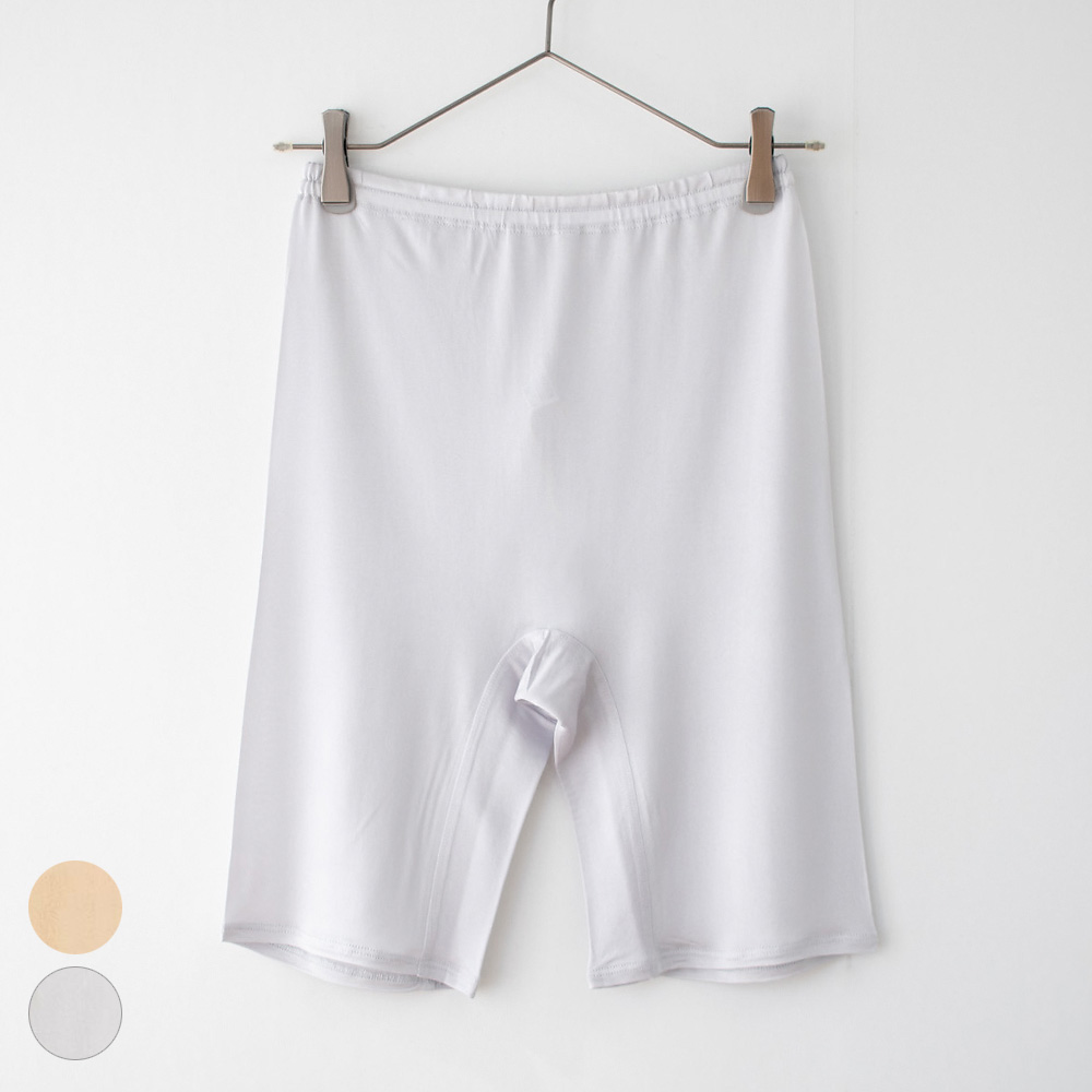 股下から裾にかけてシルク生地を二重にしてあるためショーツの代わりにお召し頂けます。また、汗を吸い取りやすく、股ズレ防止インナーとしてもご使用いただけます。