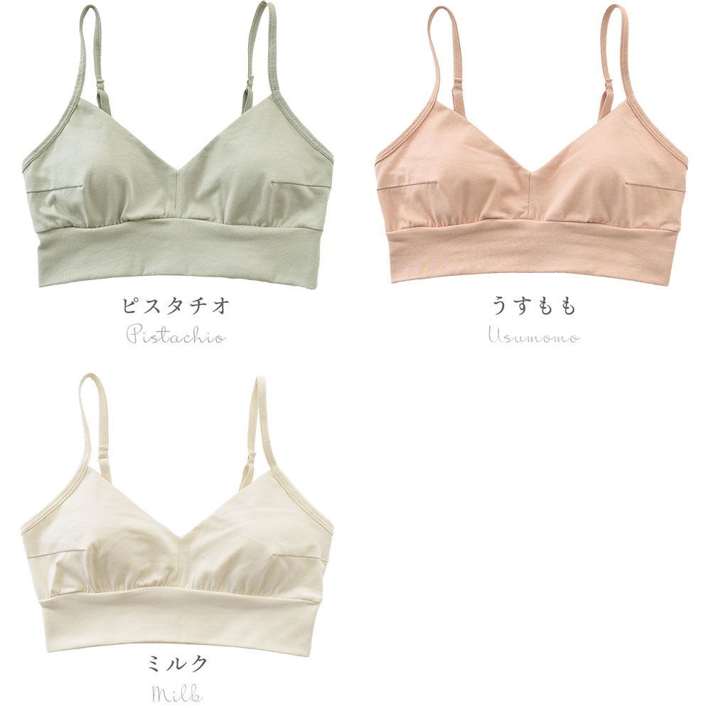 ●オーガニックコットンに伸縮性をもたせた生地を使用し、ゴムを使わず程よいフィット感に仕上げたソフトブラ