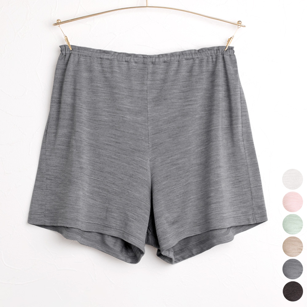 柔らかく伸びて、より素肌になじむ シルク100% ソフトジャージー素材で仕立てた タップパンツ。 シルクソフトジャージーの柔らかな風合いが心地よく、吸放湿性に優れたシルクだから汗をかいてもすぐにサラサラ。横マチを付けることでより動きやすくリラックスできる着用感になりました。裏マチもついているので1枚履きももちろんOKです。