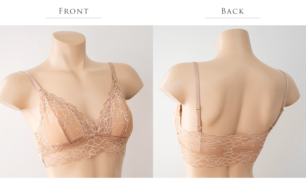 カップ裏がシルクのソフトブラ。 着用すると窮屈感のない心地よいフィット感で、おやすみタイムにもおすすめです。レースとシルク生地の間にパワーネットを裏打ちしカップが透けにくいようにしました。 カップを外せばノンパテッドブラとしてもお召し頂けます。