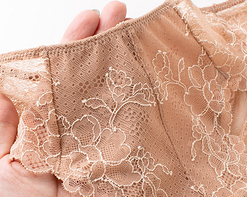 アンダー部分は総レースで締め付けのない柔らかなフィット感