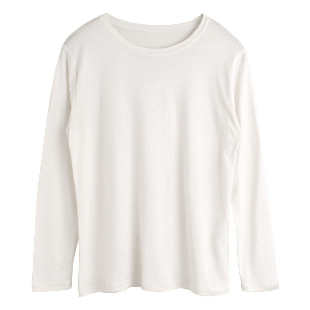 薄手のシルク100%生地で仕立てた長袖インナーは、かさばりにくいからスマートに着られます。