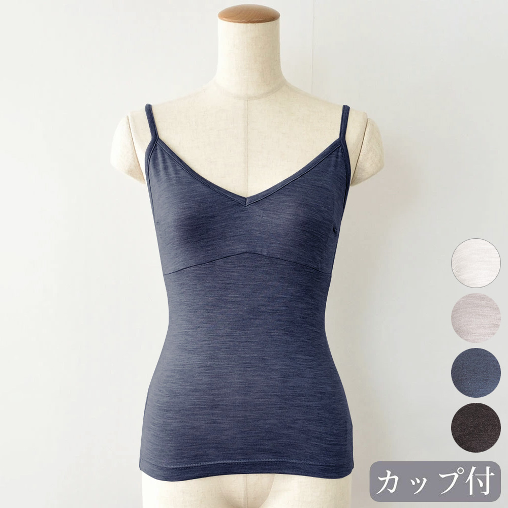 薄手の割に透け感が少なく、伸縮性に優れ、身体に動きになじむ心地よいフィット感のシルク カップ付き インナー。深いVネックラインでお洋服から覗きにくく、スマートな印象に。