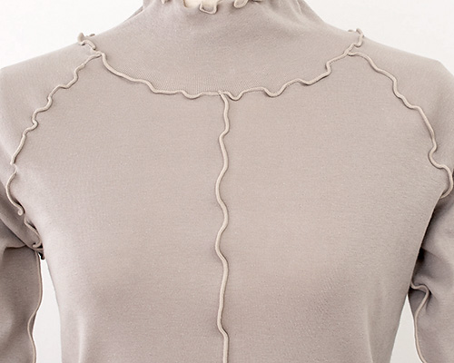 縫い目を表に返してあるので肌側はフラット状になり、優しい肌あたりになります。