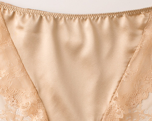 ●フロントからマチ〜ヒップ側中央にシルクサテンを使い、お肌に優しいさらりとした肌触り