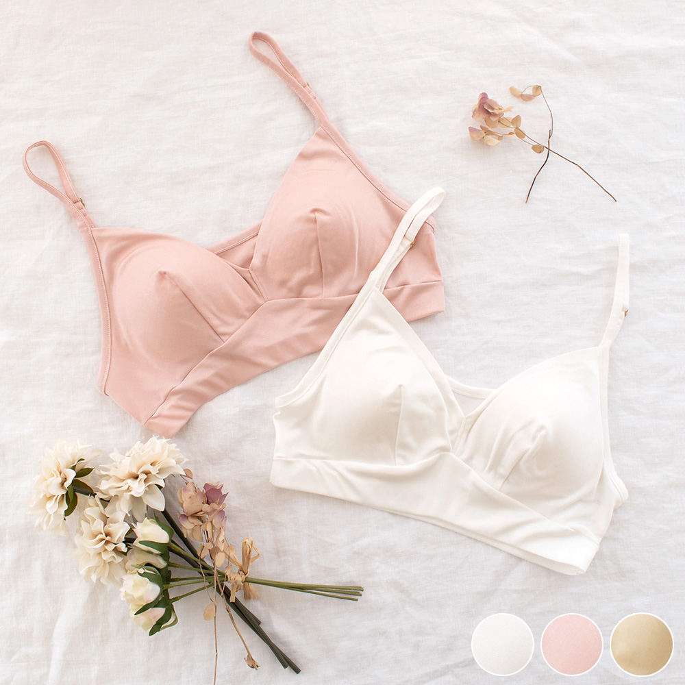素肌が喜ぶしっとりすべすべの肌触り、極上リラックスな着用感。表地・裏地、さらにはアンダーのゴム部分もシルクスムース生地で包んだお肌に優しいデザインと、着けていることを忘れるほどのストレスフリーな着心地です。おやすみブラとしてもお勧め。