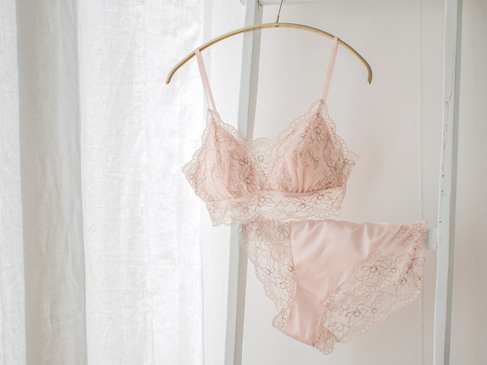 アンダー部分は総レースで締め付けのない柔らかなフィット感