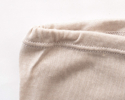 柔らかくふんわりとしたシルク100%生地で、やさしい肌触りに癒やされます。薄手でお肌に馴染みやすく、まるで第二の皮膚のように自然な着心地。 インナーとして使いやすい厚みです。落ち着いた光沢感。