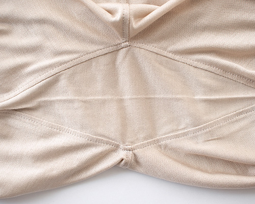 ソフトで弾力のある生地感で、締め付けが少なくやさしい肌触りに癒やされます。 薄手でお肌に馴染みやすく、まるで第二の皮膚のように自然な着心地。