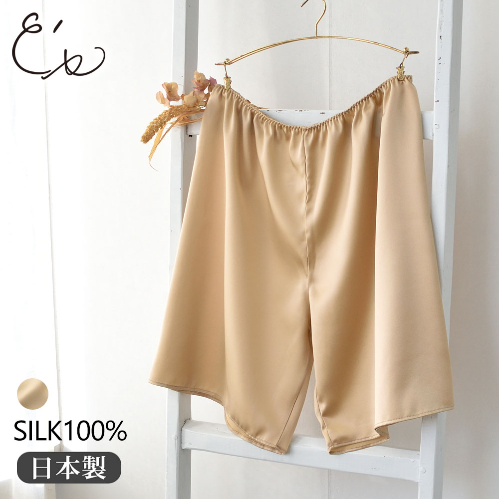 シルクサテン ペチコート ショート丈 日本製 19匁 レディース ベージュ M/L