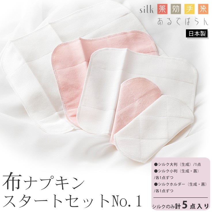 シルク 布ナプキン スタートセットNo.1 あるでばらん シルクの草木染め&未サラシネル 5枚入り 日本製 ピンク 生成り オフホワイト