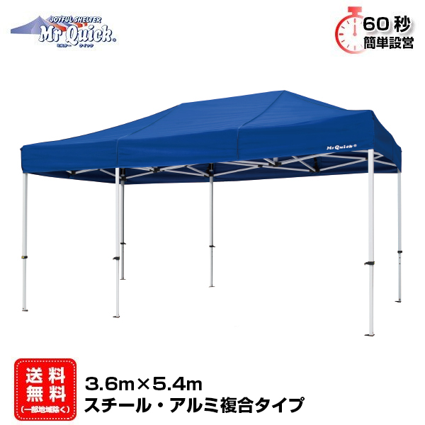 【期間限定 名入れ無料】イベントテント アルミ・スチール複合 3.6m×5.4m Mr.Quick T-35 ワンタッチテント (天幕名入れ費用込み) タープ 簡単設営 集会用