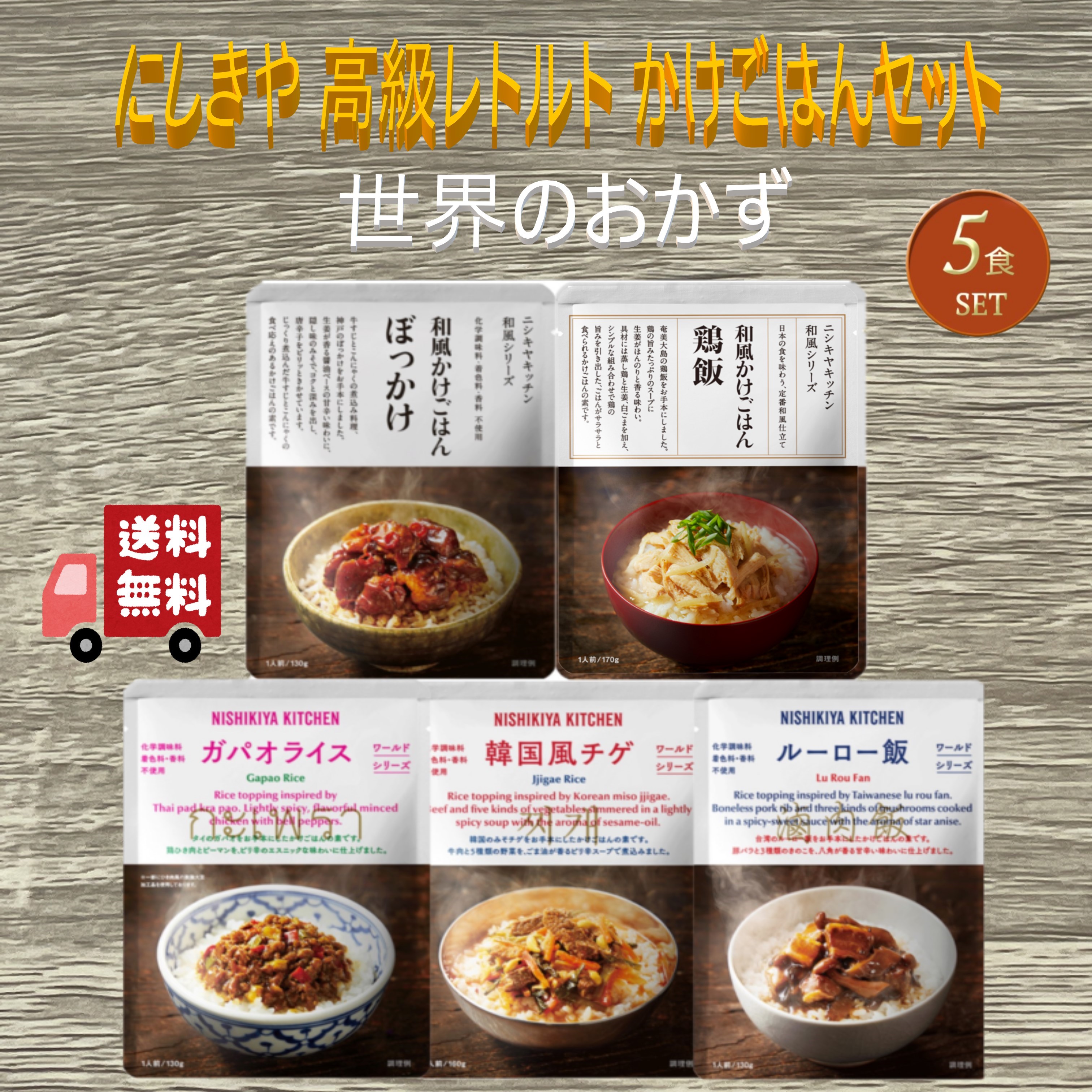 5食セット にしきや かけごはん 5種 (ぼっかけ・鶏飯・ガパオライス・ルーロー飯・韓国風チゲ) レトルト 詰め合わせ おいしい 人気 レトルト惣菜