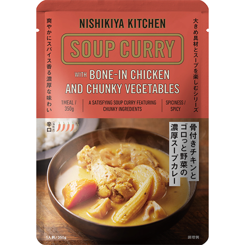 にしきや 骨付きチキン ゴロっと野菜の 濃厚 スープカレー 350g nishikiya kitchen 具だくさん 辛口 大盛り 無添加 ギフト プレゼント レトルトカレー カレー 贅沢 高級 特別 絶品 お取り寄せ グルメ にしき食品