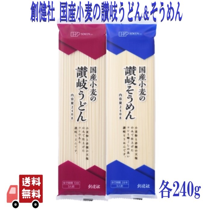 2種セット 創健社 国産小麦 の 讃岐うどん&そうめん 240g うどん そうめん 素麺 乾麺 無添加 化学調味料不使用 アソート