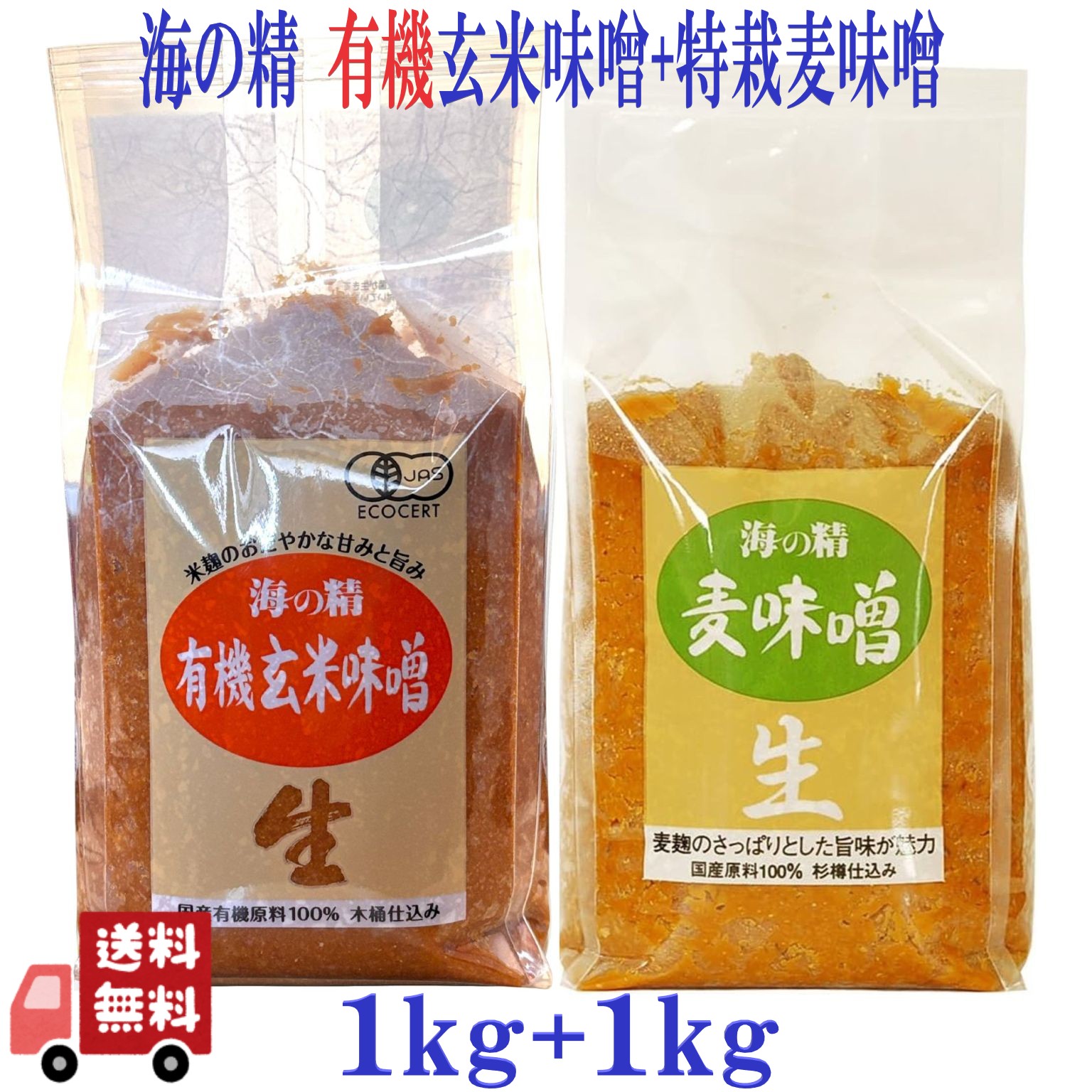 2個セット 海の精 国産 味噌 2種 ( 有機 玄米味噌 + 特別栽培 麦味噌 ) 1kg 各1個 有機JAS 無添加 国産 大容量 業務用 自然食品 オーガニック 発酵食品 味噌汁
