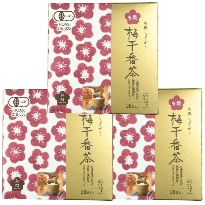 3個セット 無双本舗 有機 しょうが入り 梅干番茶 スティック 8g×20袋 有機JAS 国産 梅醤番茶 オーガニック 番茶 梅干 生姜 無添加 個包装 マクロビオティック