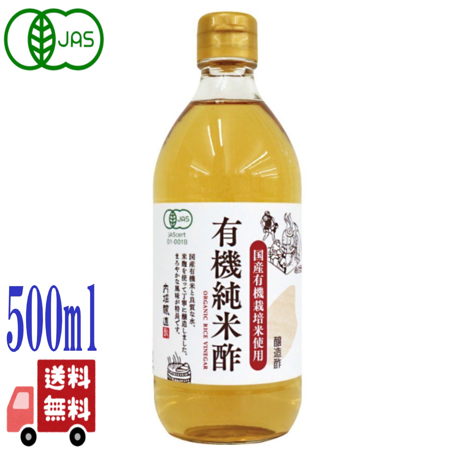 内堀醸造 国産 有機 純米酢 500ml 有機JAS認定 オーガニック 無添加 調味料 酢 醸造酢 純米酢 米酢 有機米 健康 ドリンク 飲用 酢の物 ギフト プレゼント
