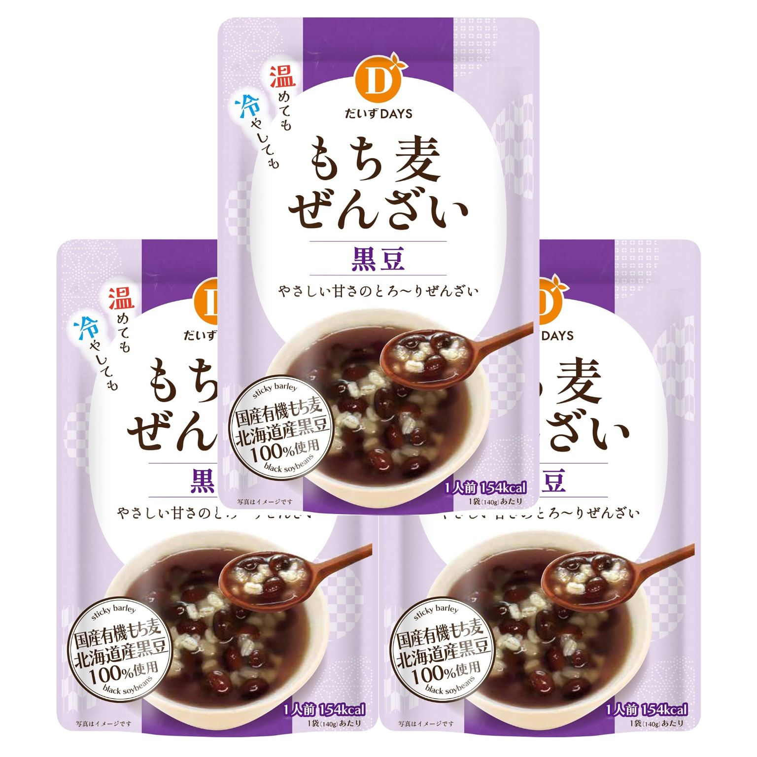 3個セット だいずデイズ もち麦ぜんざい 黒豆 140g 国産 有機 黒豆 もち麦 ぜんざい レトルト おしるこ 小豆 無添加 スイーツ 和菓子 健康 ヘルシー ギフト