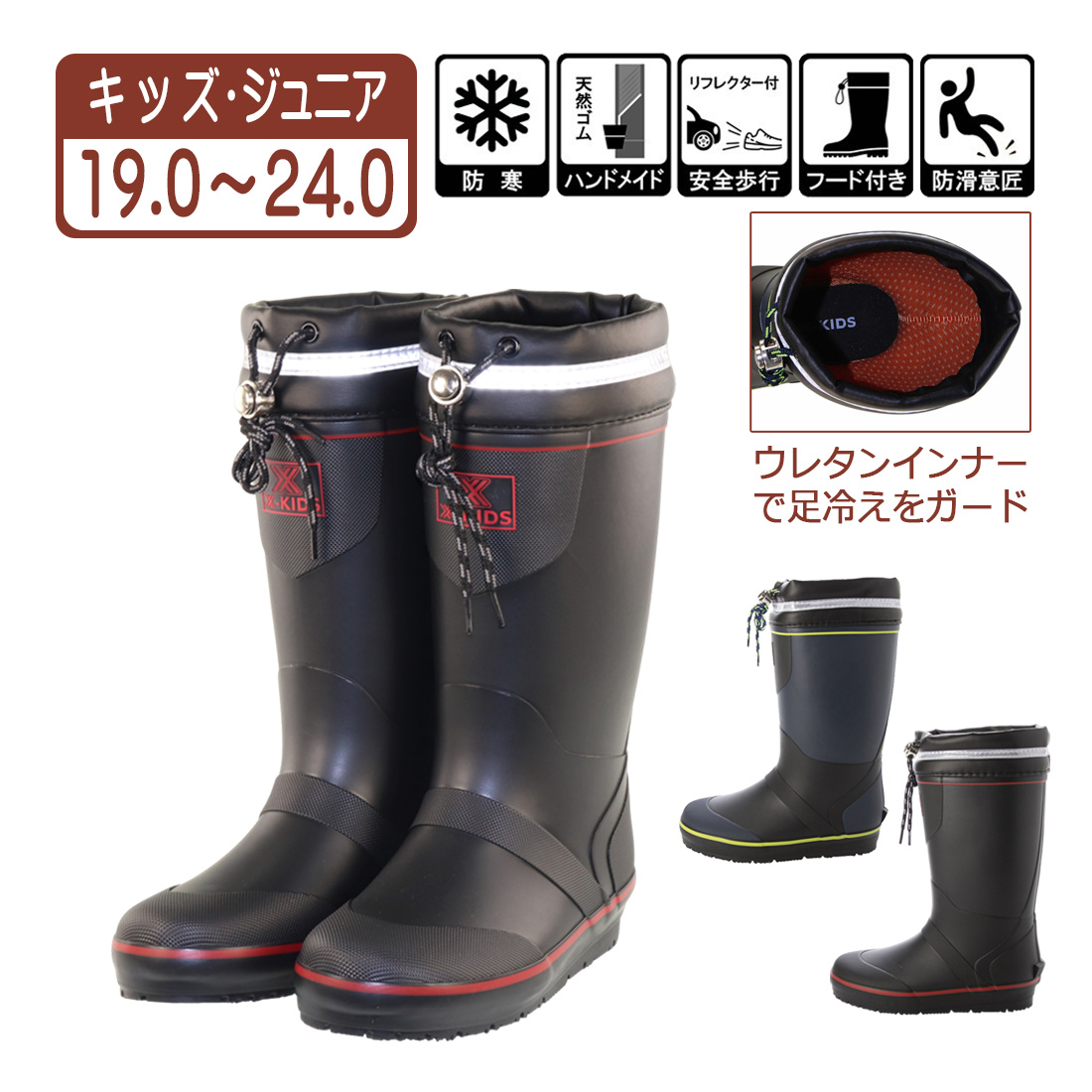 キッズ 防水防寒ブーツ レインブーツ アウトドアブーツ ワークブーツ 長靴 雨靴 フード 巾着付 防滑 幅広 19.0 〜 24.0 xm_24060 基本送料無料