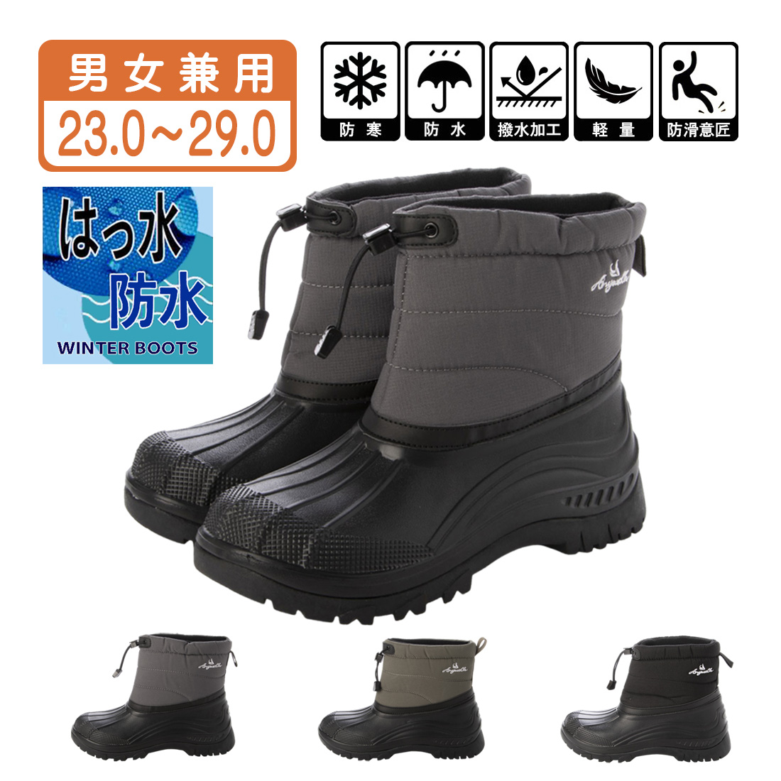 男女兼用で豊富なサイズ展開の 防寒 防水 ダウンブーツ。