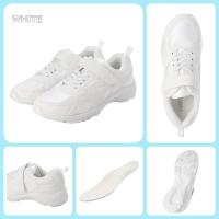 ベルクロバンドとプルストラップの組み合わせで脱ぎ履きがしやすく、伸縮性ゴム紐で紐を結ぶこと無くフィット。